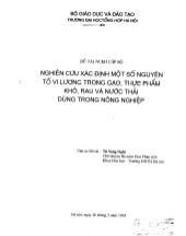 (Bản scan) Mục tiêu của đề tìa là nghiên cứ để đề ra một quy tình phân tích chính xác lượng vết các kim loại Cu, Pb, Cd trong gạo, thực phẩm khô như cháo ăn liền, nitrit( NO2 -) trong nước thải nông nghiệp, trong rau bắp cải, nitrat (NO3-) trong rau quả